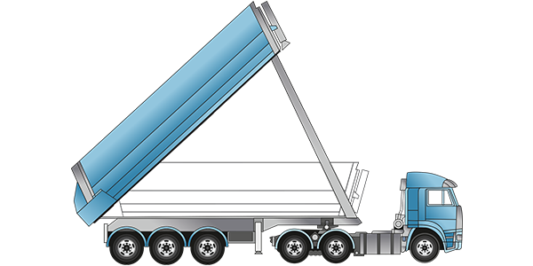 Trīstiltu pašizgāzējs ar riteņu formulu 6 x 4 un kravnesību 18 tn.